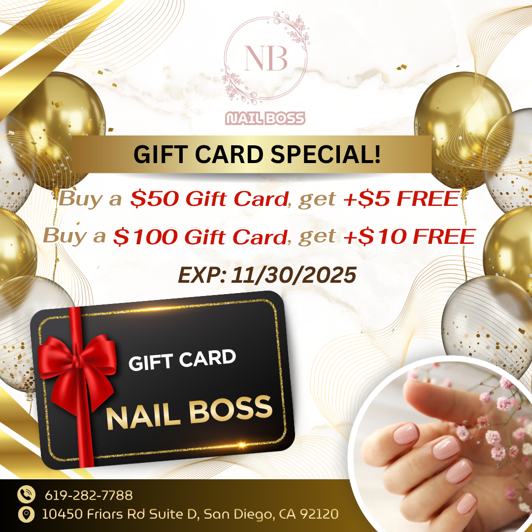 Located at 10450 Friars Rd Suite D, San Diego, CA 92120, Nail Boss has proudly served the San Diego community since 2022. We specialize in manicures, pedicures, nail enhancements, waxing, and lash services, all delivered in a clean, relaxing and welcoming space where your comfort comes first.